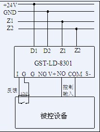GST-LD-8301型輸入/輸出模塊與現(xiàn)場設(shè)備的接線: